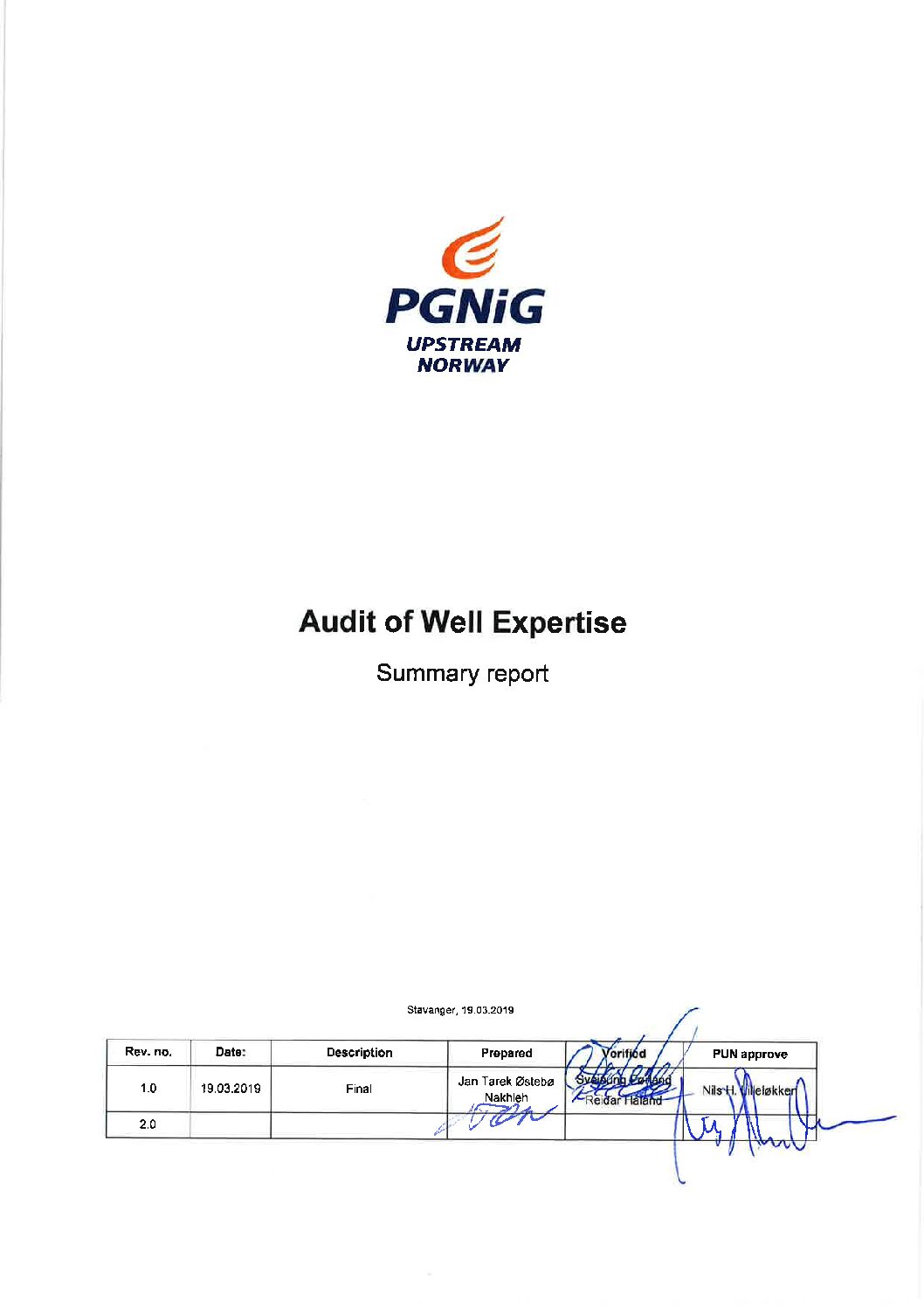Comment: WE will get back to PGNiG with respect to Exceed personnel availability and capacity by end Q2. Exceed has been contacted and resources through them are still available. -