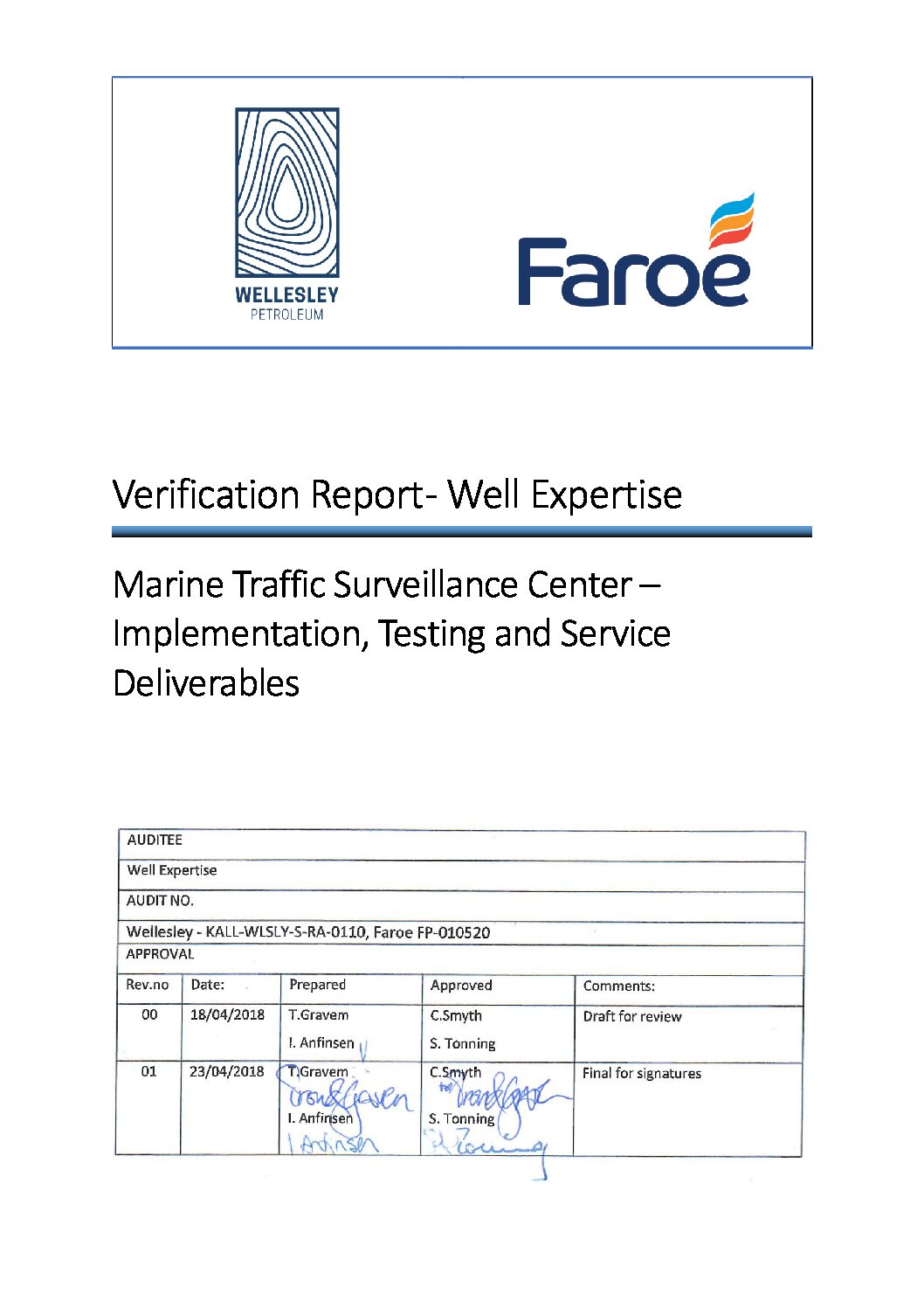 Verification Report- Well Expertise- Marine Traffic Surveillance Center – Implementation, Testing and Service Deliverables